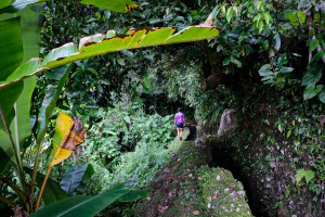 Ceci sticks her tongue out in concentration. Or maybe it’s one of those stick-your-tongue-out selfie poses? She’s trying to capture the essence of two large demonic sculpture, but the tiny little screen on our GoPro makes it hard to tell whether they are properly in frame. It seems like they are carved out of sheer stone, every single bulging muscle so incredibly detailed, the wide angry eyes, the menacing sneer… but the grit and slime covering them, the green carpet of moss—it’s hard to tell. Water beading from every pore…