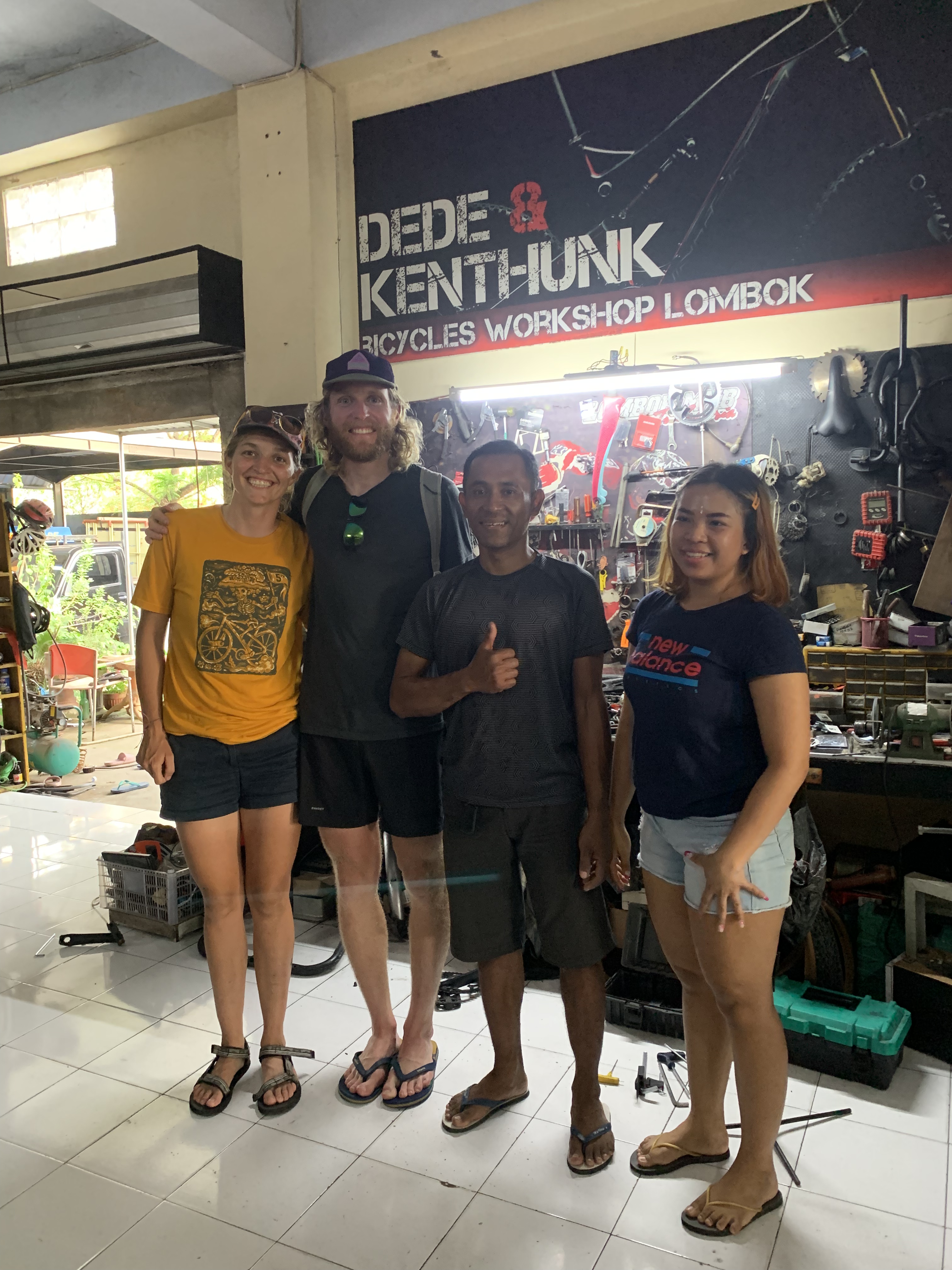 Hopping off the ferry, I put on my red nose and goofy clown shoes again and 1000rpm-ed for another 30kms to Mataram. We’d never planned to visit Lombok’s capital, but here we are touring every shop on the map with the word Sepeda or Bicycle in it. After 6 unsuccessful attempts in shops spread-eagled across town, we decided: enough clowning around. We checked-in at a crummy motel, showered and decided to check one last point on the map on the way to dinner.